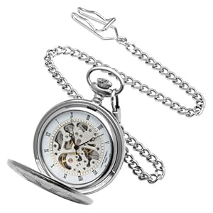 Finished in elegant silver tones for a crisp, classic look, the Charles-Hubert, Paris Mechanical Pocket Watch #3674 puts a distinctive discuss a conventional style. This pocket watch includes a silver-tone cover which has a center cut-out window for display while the watch is closed, and supplies the precision of 17-jewel winding movement. Silver-tone Arabic numeral hour markers match silver-tone hands, and appear sharp against a clean white dial. This watch also features contemporary time markings, luminous dials, a moon phase/date dial and seconds subdial. Complete with a matching curb chain, this Charles-Hubert original arrives in the deluxe blue giftbox.