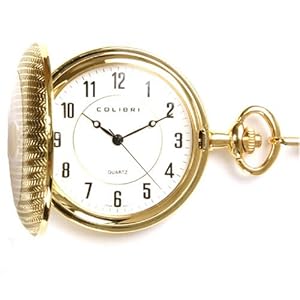 Colibri of London Pocket Watch with Cover Classic Design Gold Plated PMS096044. This classic design pocket watch features gold tone case, quartz movement, patterned white dial with large numbers, chain and engravable area on cover. Great Gift!